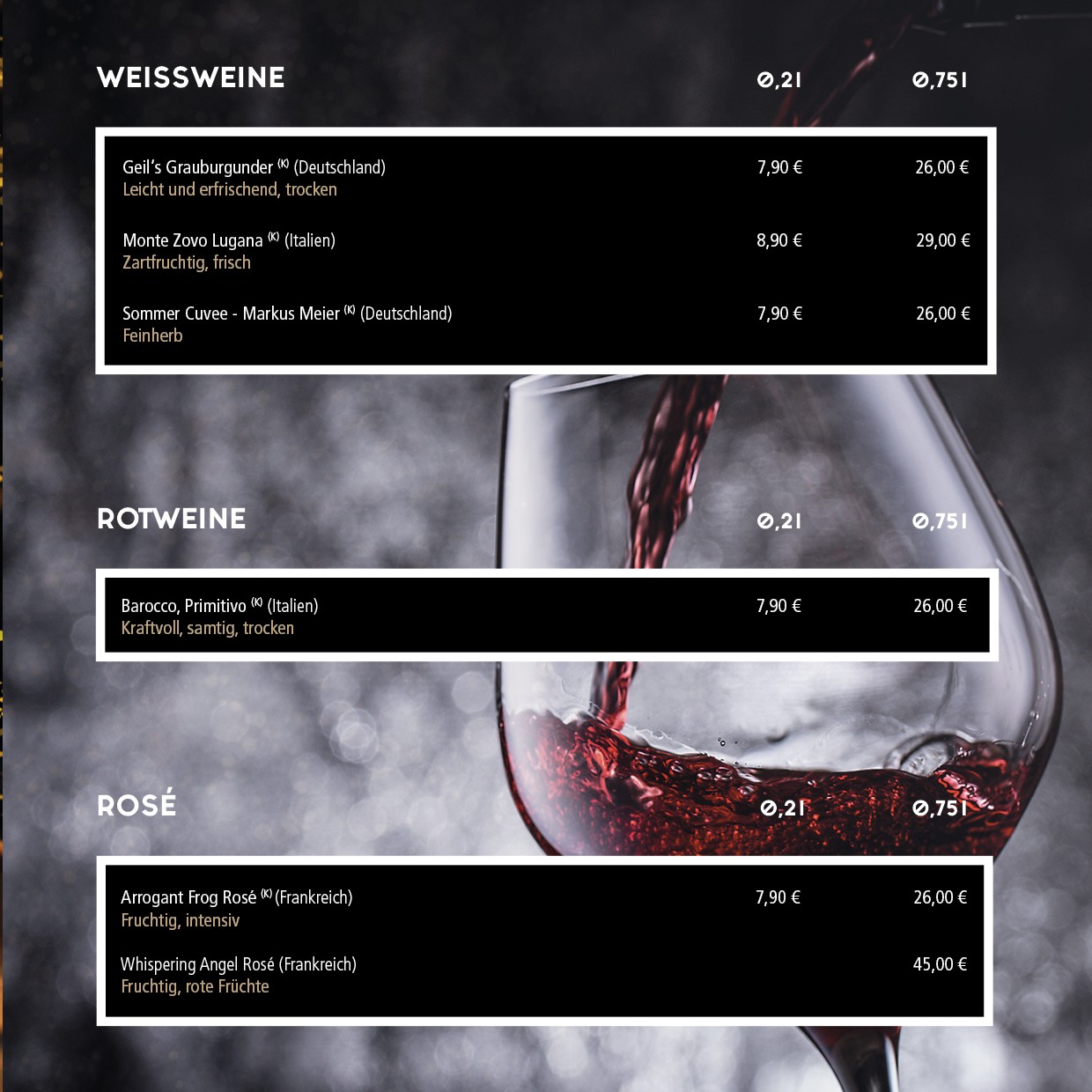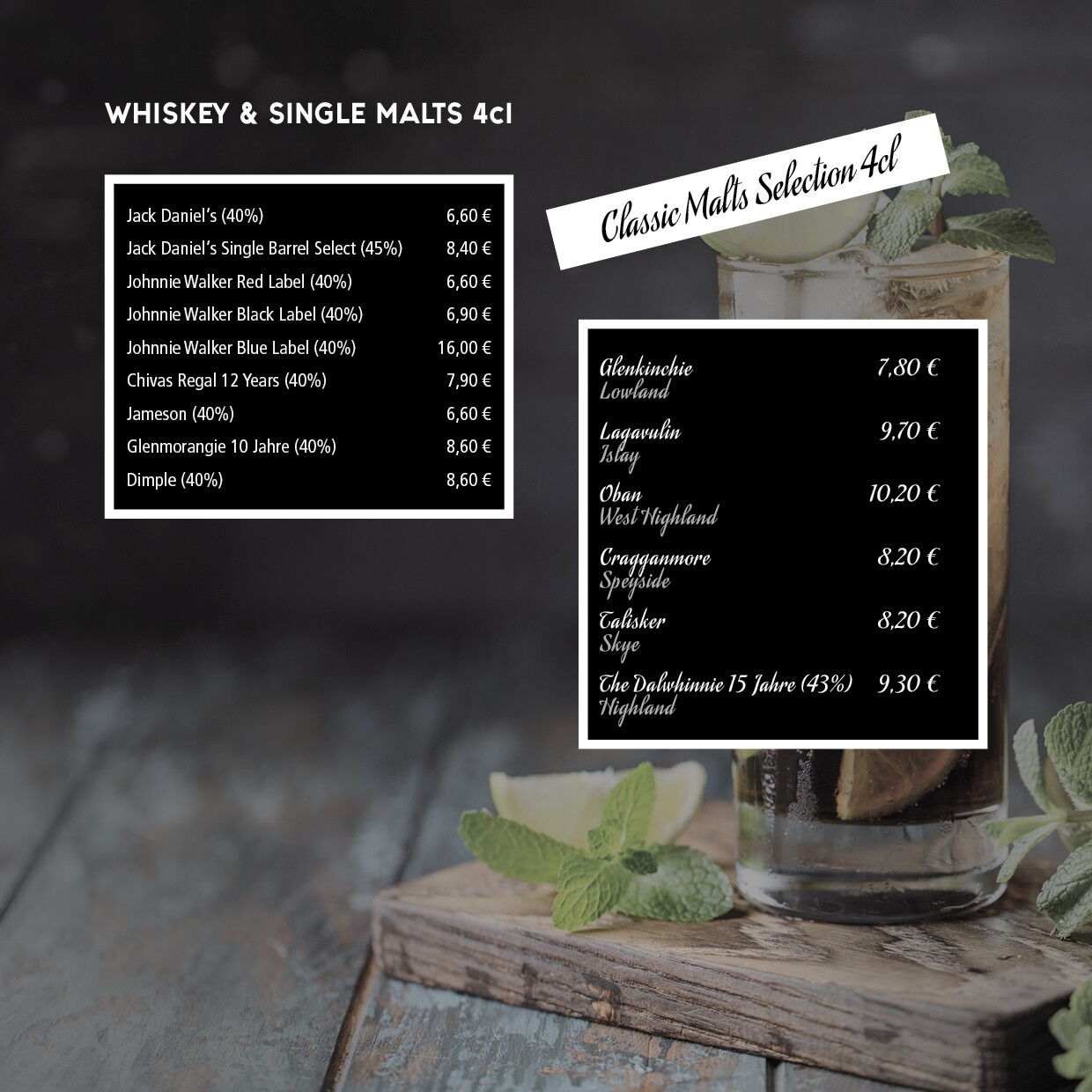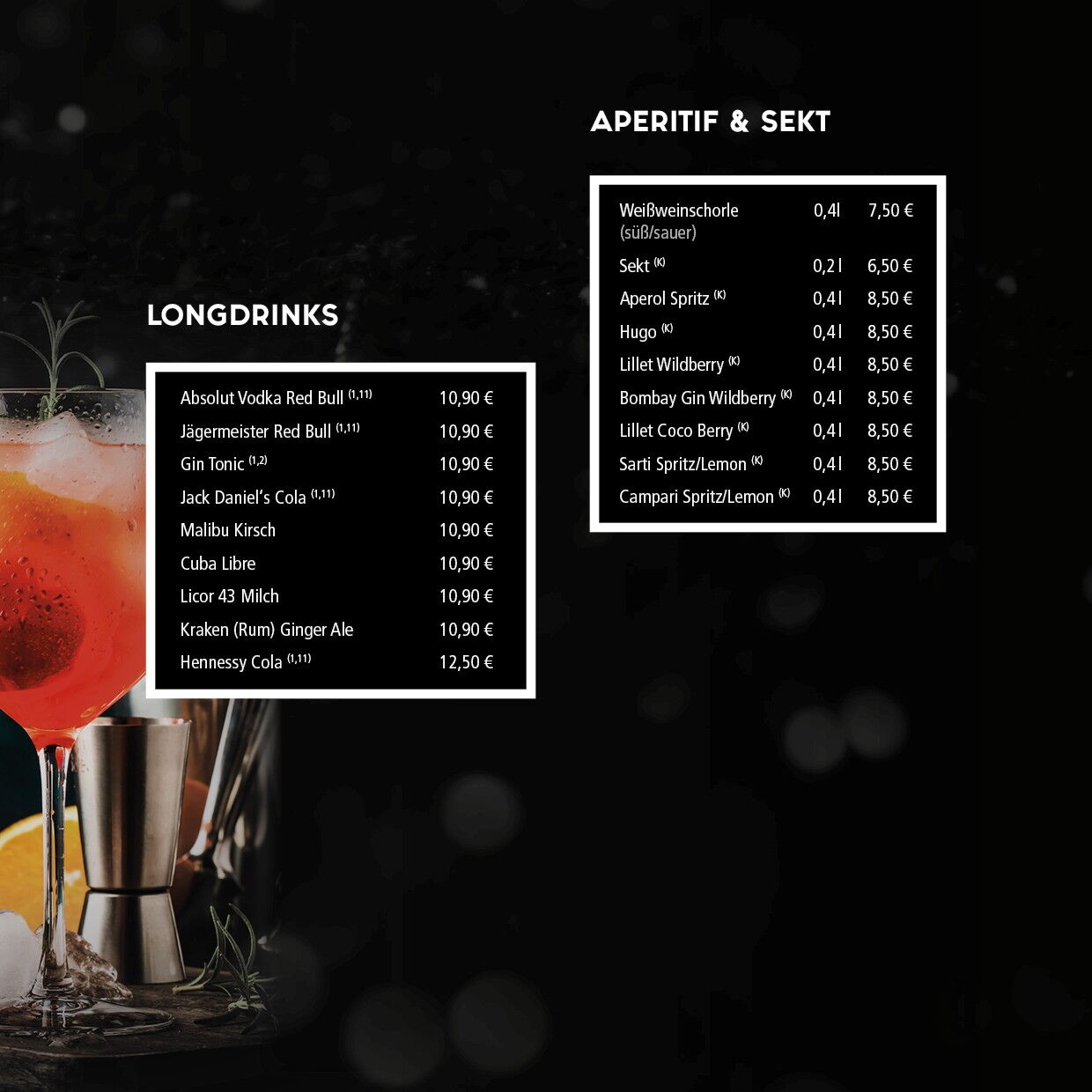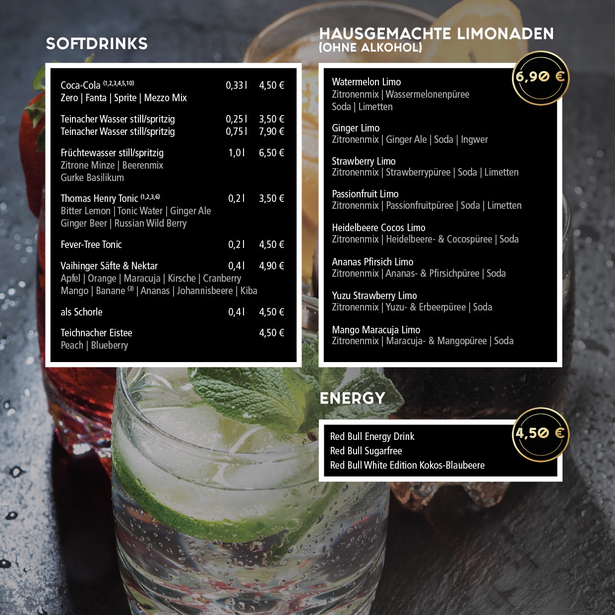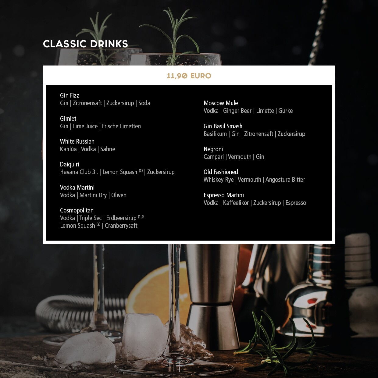 Premium-Spirituosen- und Liköre, hausgemachte Säfte und frische Zutaten sind die Grundbausteine, um euch und euren Gästen sensationelle Drinks zu servieren. So wird das Society zu einem Ort der Entspannung, des Wohlfühlens oder einfach zum Treffen und Genießen.