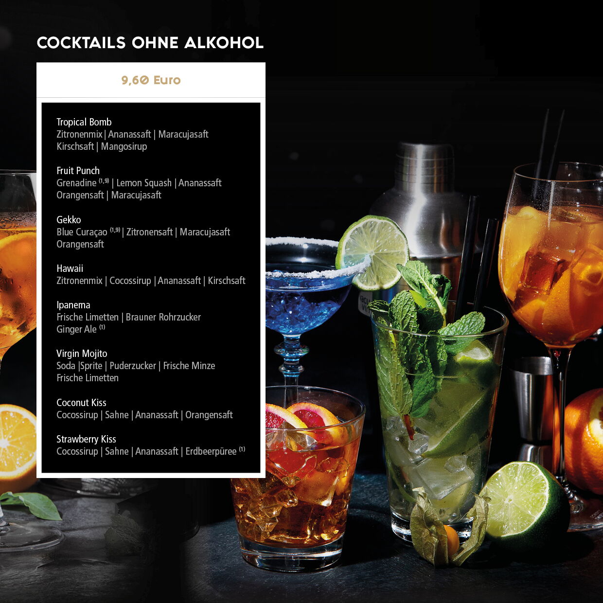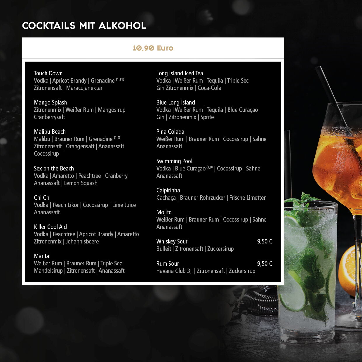 Happy Hour von 14:00 bis 20:00 Uhr auf alle normalen Cocktails sowie ab 20:00 Uhr auf alle Jumbo Cocktails